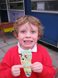 We drew around our feet, cut them out and decorated them. During Diwali footprints are used to encourage the goddess Lakshmi into houses.